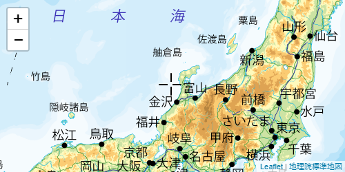 地図を表示しているタグの中央に十字カーソルを表示しているだけで、Leafletの機能は使っていません。