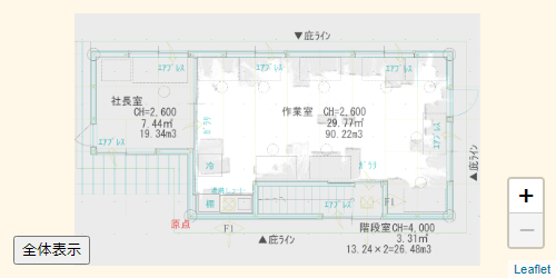 Leafletを使った平面図の表示方法は、平面図の座標系での表示と同じです。