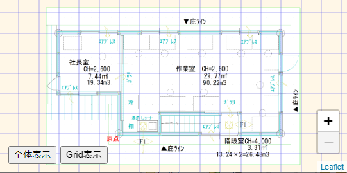 Leafletを使った平面図の表示方法は、平面図の座標系で表示と同じです。