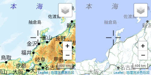 連動表示には、jieter氏が作成した、L.Map.Sync.jsというプラグインを利用しています。
